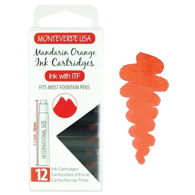 Mandarin Orange Fountain Pen Ink Cartridges by Monteverde Monteverde International Standard Fountain Pen Ink Cartridges,Mandarin Orange Monteverde USA is proud to have created the world's latest leading European ink treatment formula (ITF). Enjoy peak perf